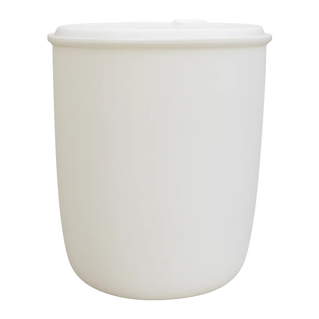 120 literes mosott ,natúr színű, UN minősített rögzített tetejű tri-sure záras műanyag hordó.