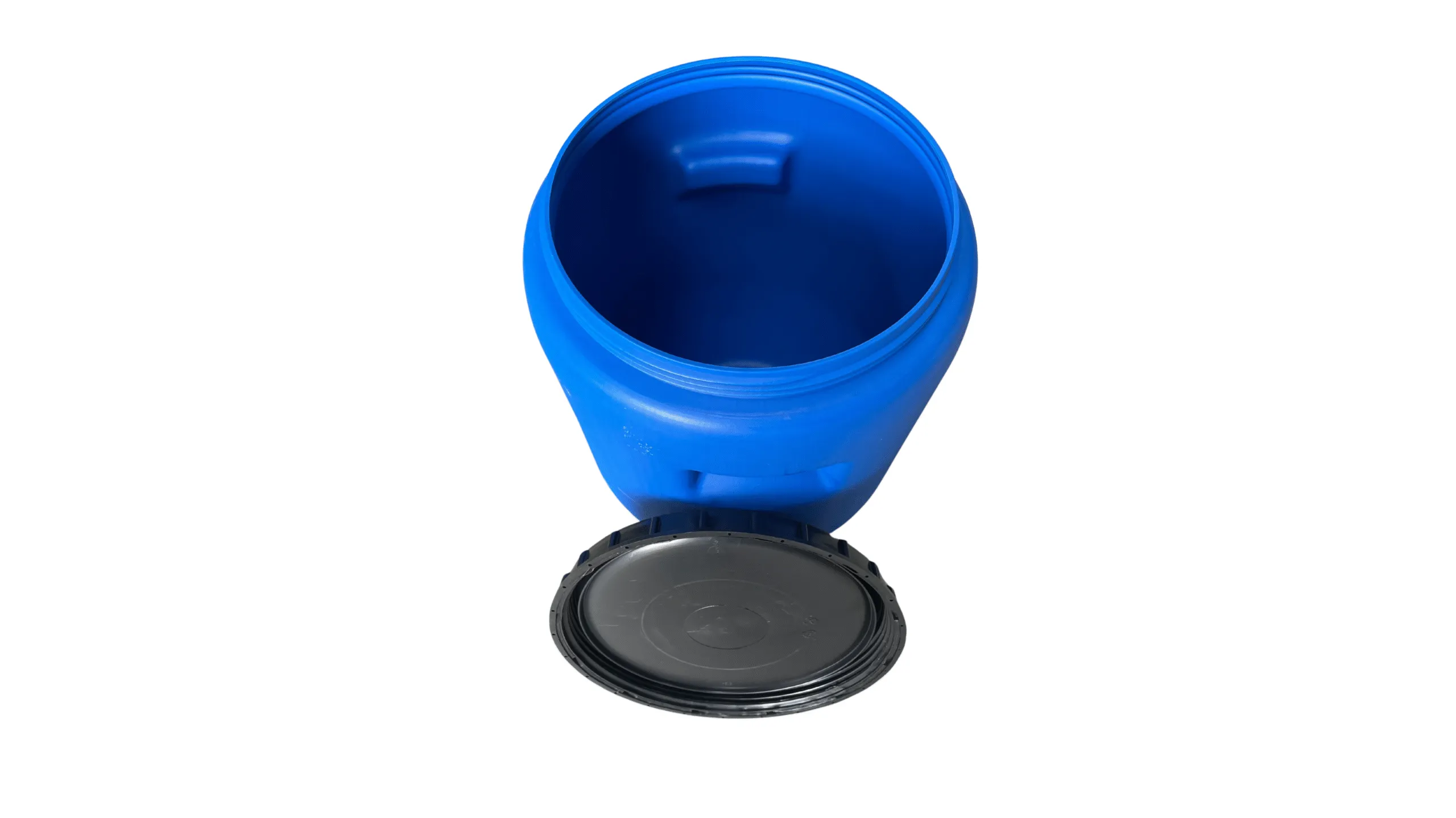 Áru megnevezése:Műanyag levehető ,csavaros tetejű 50 literes mosott, kék színű műanyag hordó.