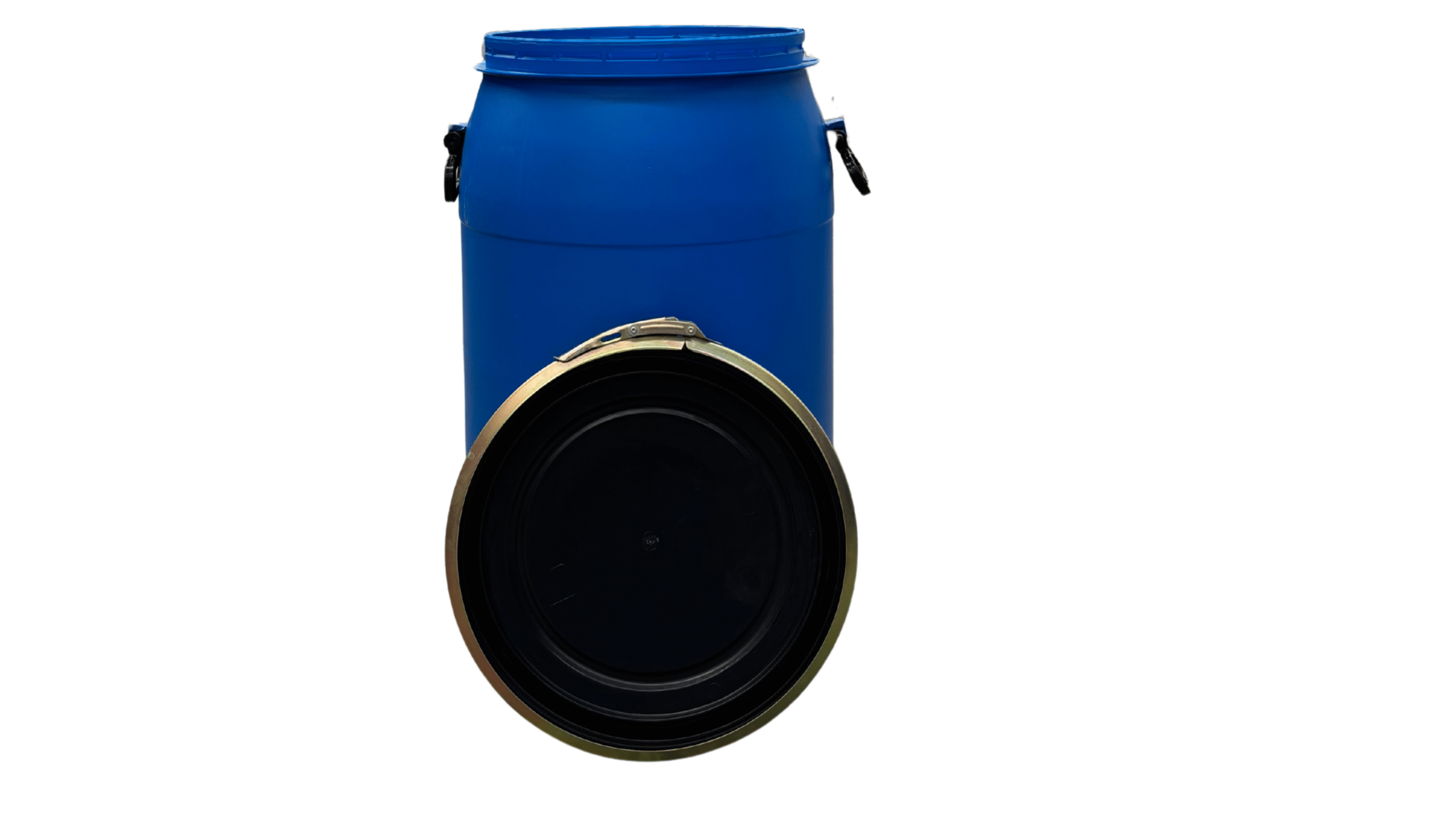 60 literes levehető tetejű ,fém bajonett záras,műanyag hordó ,két füles