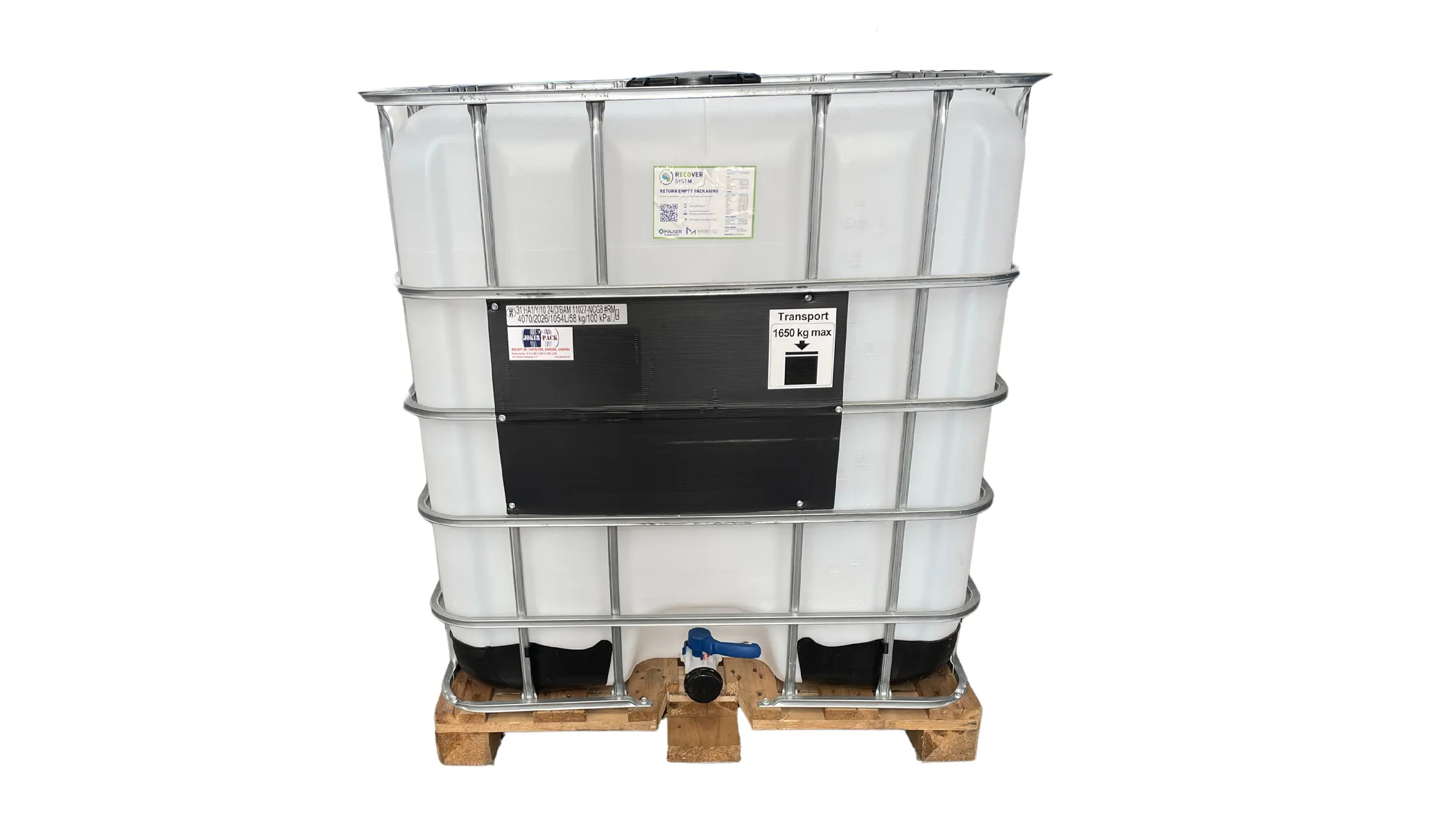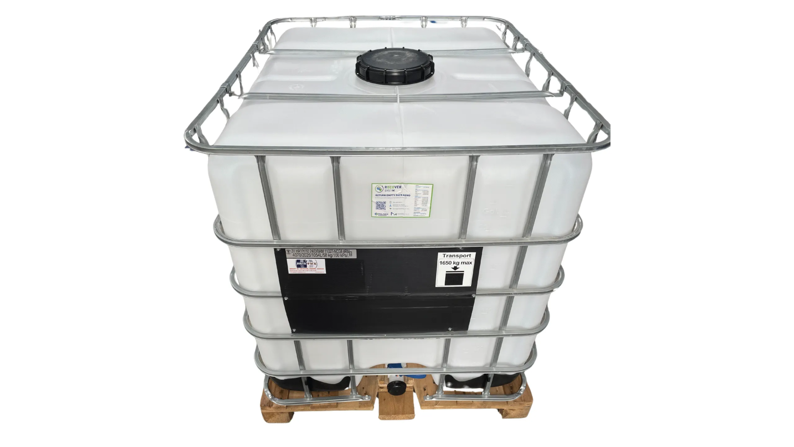 MAUSER LX-1000 Literes , Fa raklapos IBC TARTÁLY , UN minősített, Nagy betöltős! /22,5 cm/